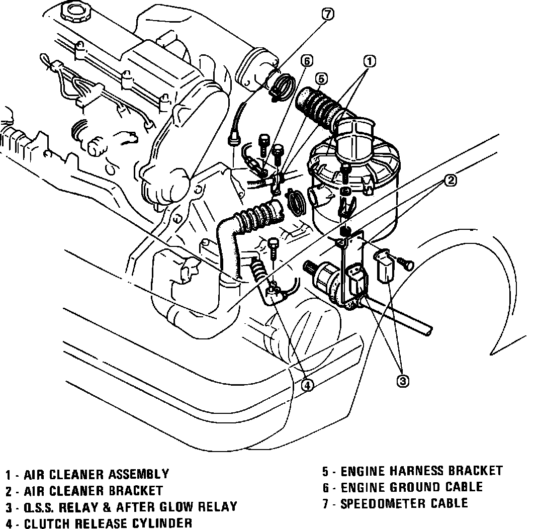 19. Disconnect Q.S.S. relay and glow plug relay from air cleaner bracket and remove bracket, Fig. 2.