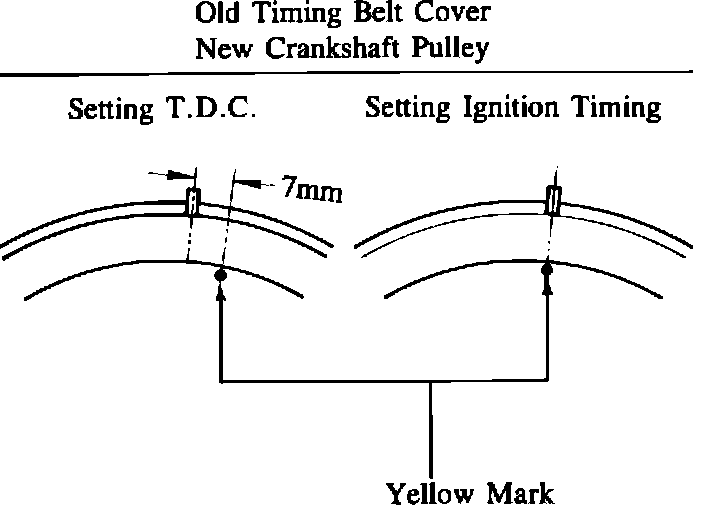 Note: If the new timing belt cover or crankshaft pulley is installed onto the vehicles produced prior to this modification, please use the following procedures.