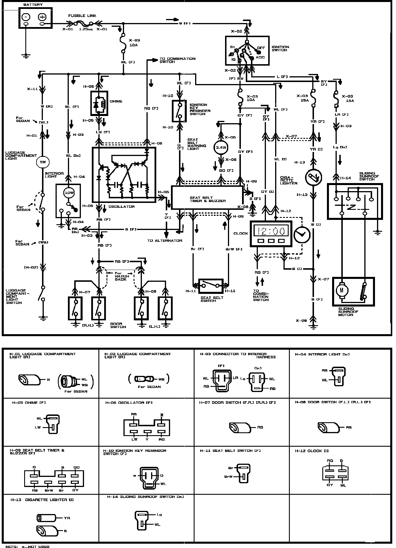 Fig. 14 Clock, Interior Lights, Lighter, Sunroof & Warning Chimes: