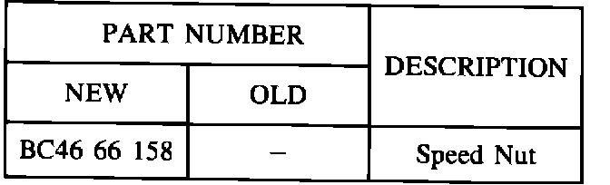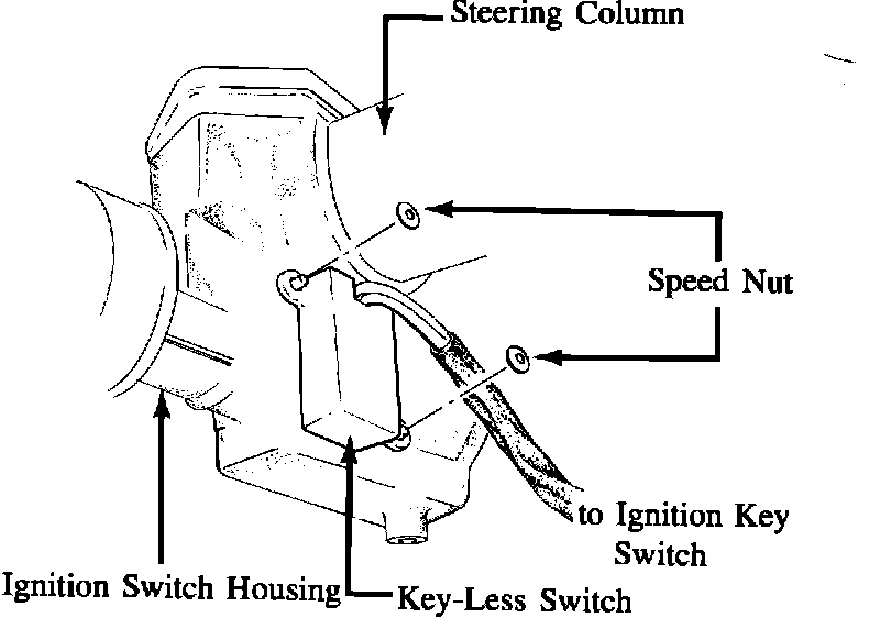 The speed nut for fixing the key-less switch to the ignition key cylinder housing has been established as a service part. If the replacement of the ignition key switch is necessary, please use the new speed nut to secure the key-less switch.