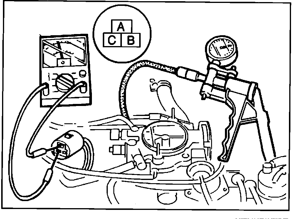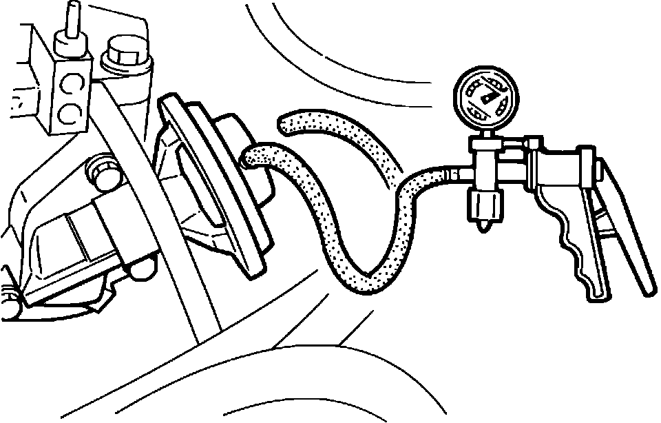 7. Apply vacuum with a vacuum pump. If the engine becomes rough or stops when the vacuum exceeds 50 mm-Hg (1.97 in-Hg), The valve operates properly.