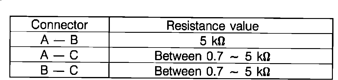 9. Connect an ohmmeter to position sensor connector as in Fig. 14. If the meter shows the following resistance, Fig. 15, the position sensor is OK.