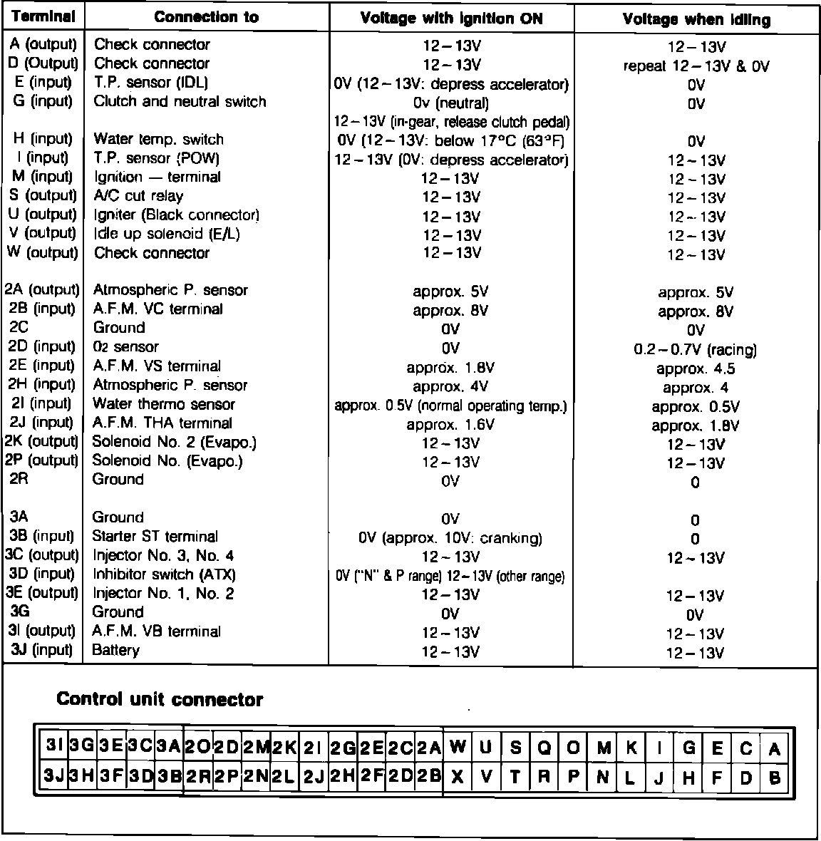 Fig. 56 Control unit voltage specifications chart.:
