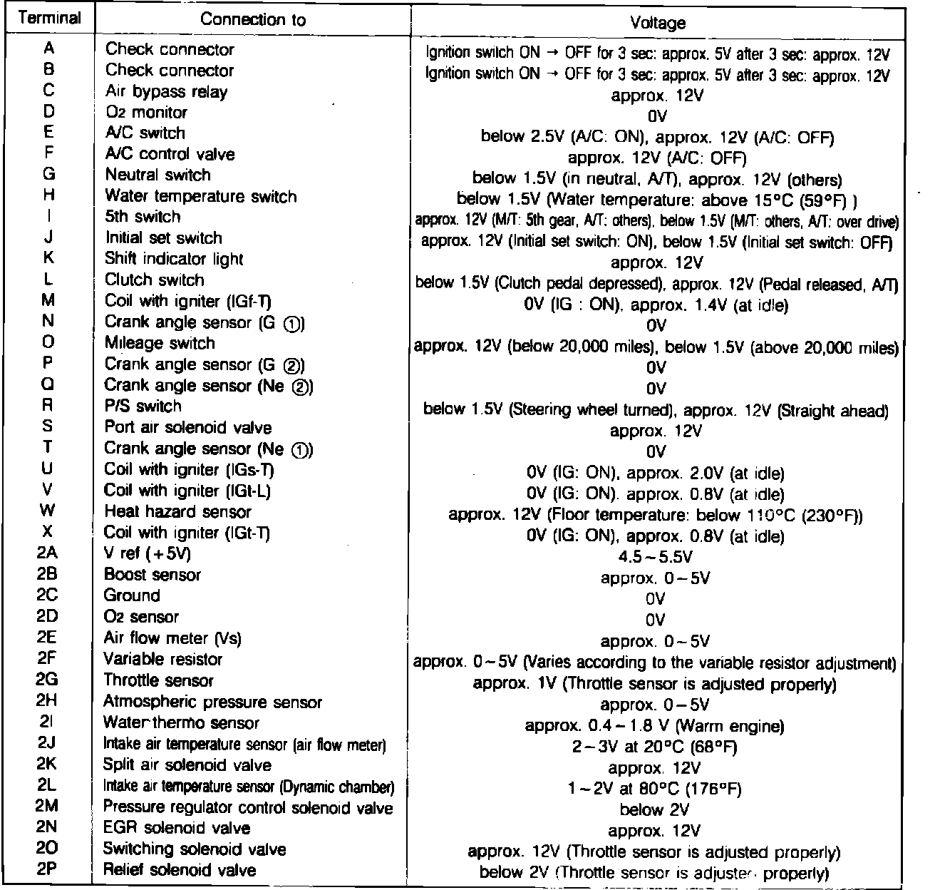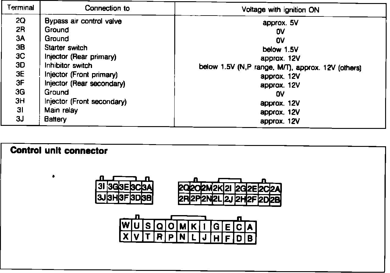 Fig. 59a Control unit voltage specifications chart: