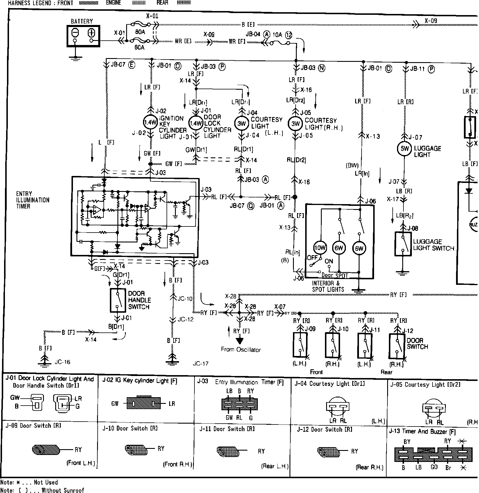 ���Fig. 24b Courtesy Lights, Door Lock Cylinder & Ignition Key Cylinder Lights, Interior & Spot Lights, Luggage Compartmnet Light & Seat Belt Warning System Wiring Circuit. Station Wagon: