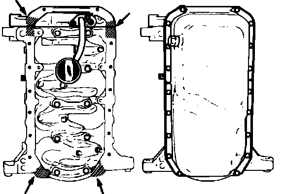 Fig. 29 Oil pan sealant areas. SOHC engine: