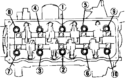 Fig. 35 Cylinder head bolt tightening sequence. 1986-87: