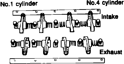 3. There are two types of rocker arms with different offsets. The rocker arms used for the No. 1 and No. 2 cylinders are the same for exhaust and intake, No. 3 and No. 4 also use the same rockers.