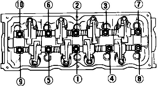 Fig. 38 Rocker arm & shaft attaching bolt tightening sequence:
