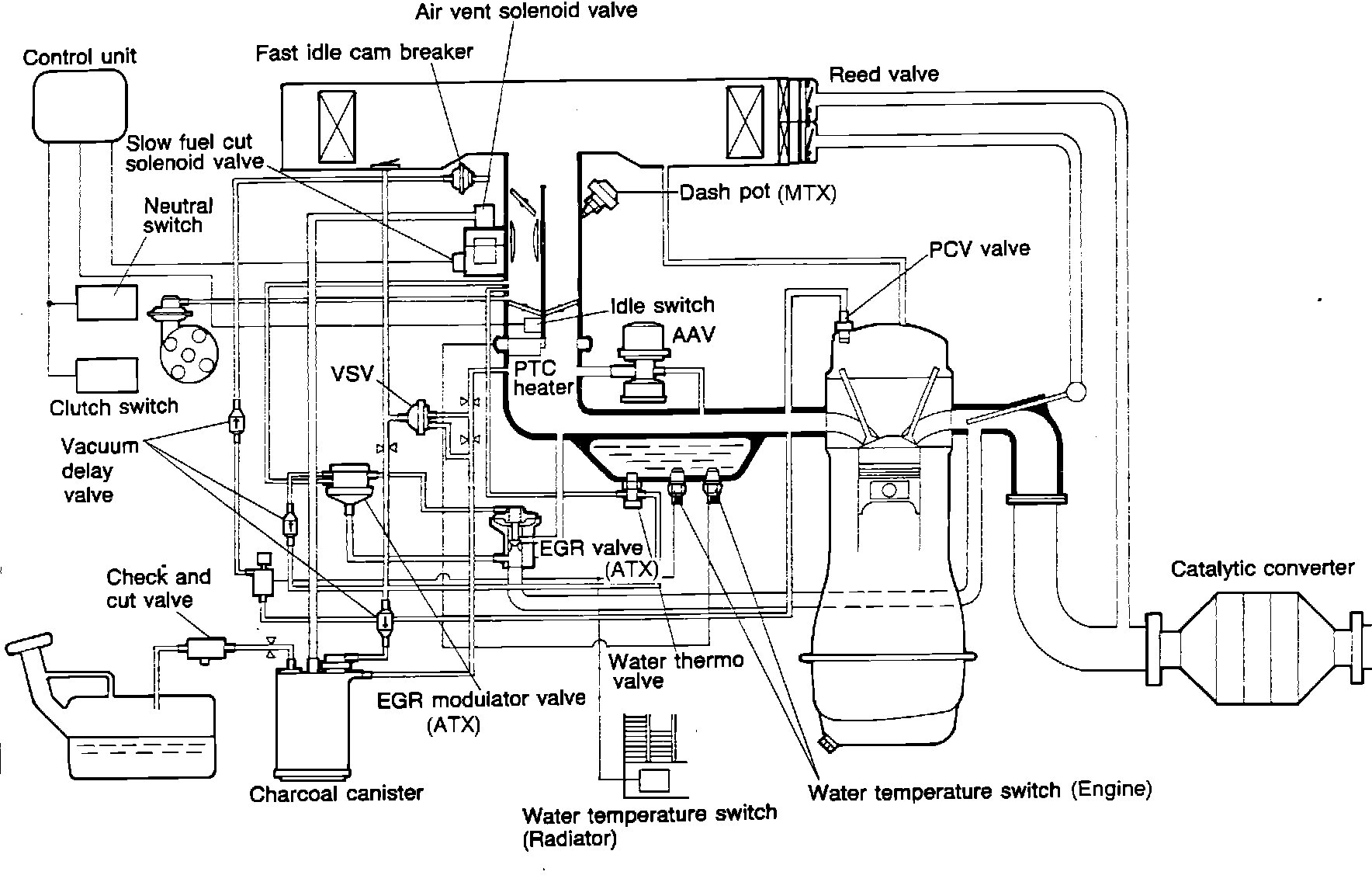 This system, Fig. 5 consist of a control unit, slow cut solenoid valve, clutch and neutral switch, and idle switch. It regulates fuel flow depending on engine load and ignition shut down preventing "run on".