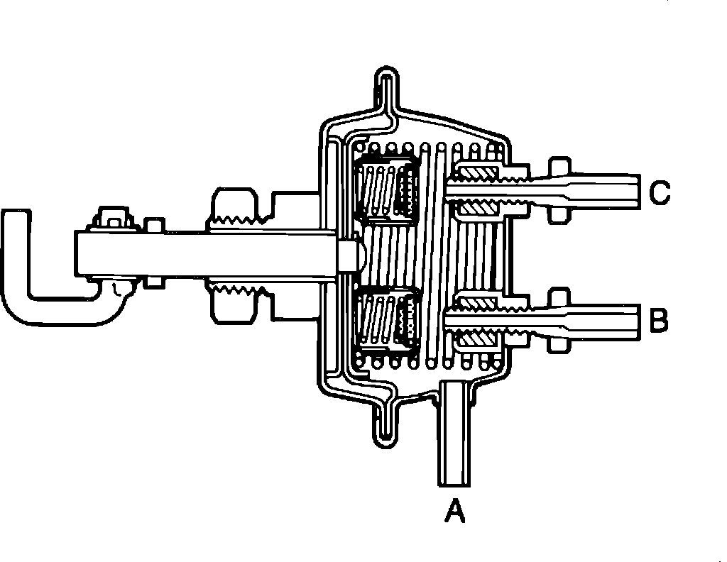 15. Disconnect the vacuum tube from the servo diaphragm port (C).