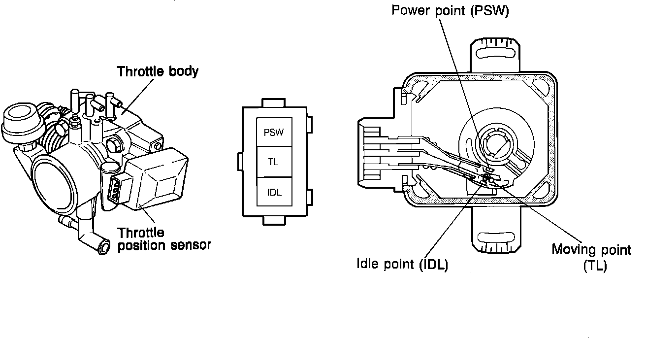 3. If continuity is not as described, Fig. 22 adjust throttle sensor. Refer to "ADJUSTMENT USING AN OHMMETER" and "ADJUSTMENT USING SST TOOL".