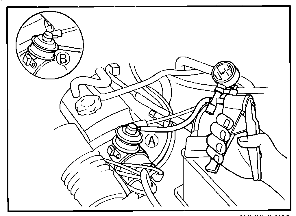 4. With engine at idle, attach a vacuum pump to the control A and B