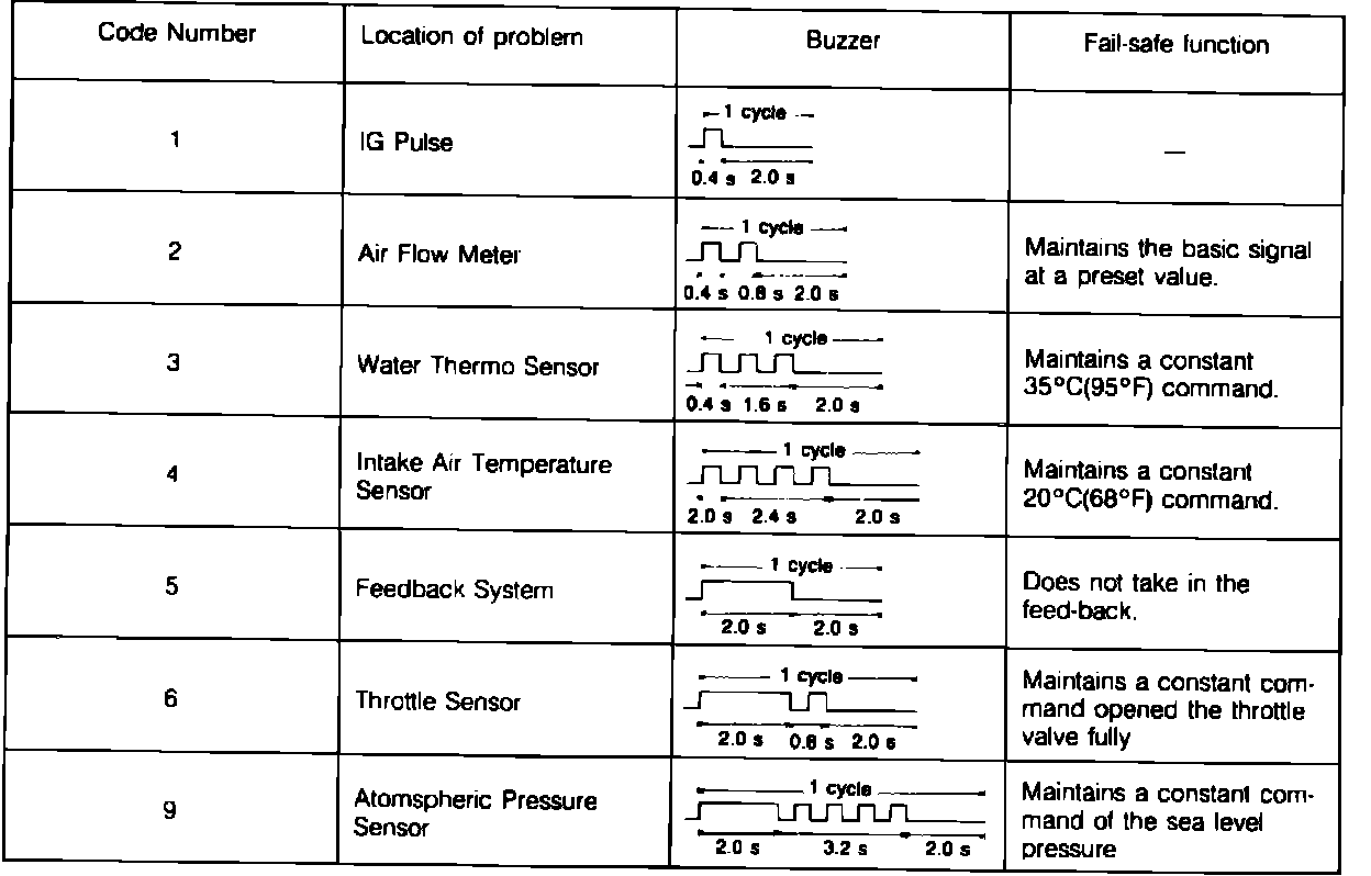 Fig. 8 Trouble code chart. Non-turbocharged models: