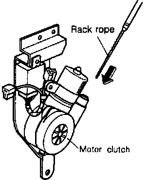 9. Check that teeth on rack cable are facing the motor clutch. Insert rack cable into motor and hold in position.