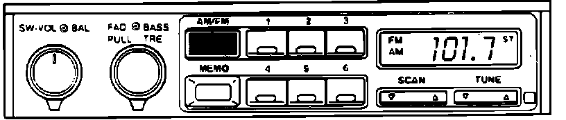 In addition, if SCAN is "down" (triangle down symbol), a similar condition may occur as above. This time scan pauses at 101.7 but is trying to receive 101.5. Again, the result is poor reception.