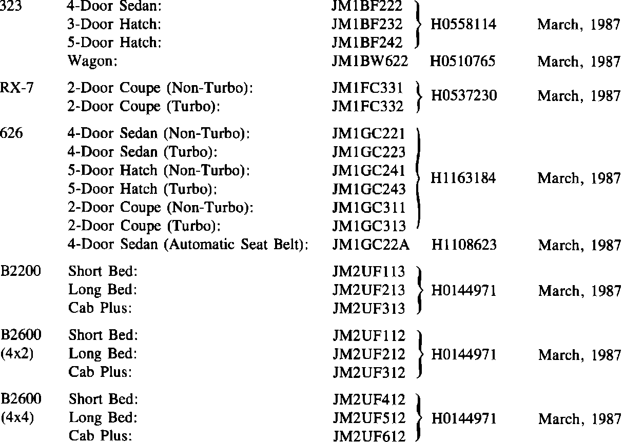 87mazda05Category Applicable Model/s Subject Bulletin No. 009/87