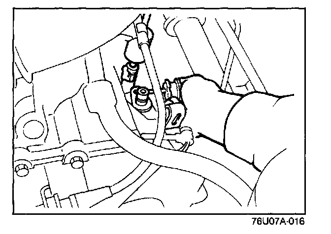 1. Remove the speedometer cable dust cover, hold the spring clip, and disconnect the cable from the speedometer driven gear.