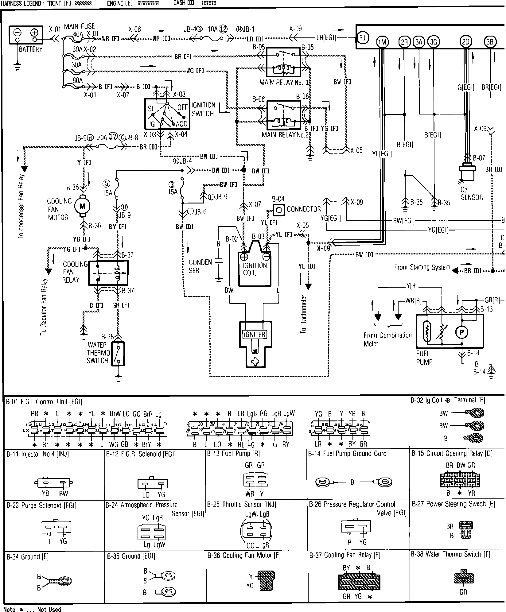 U��%���%Fig. 52c Ignition, Cooling Fan, Fuel Injection & E.G.I. Control System Wiring Circuit. Less Turbo With M/T: