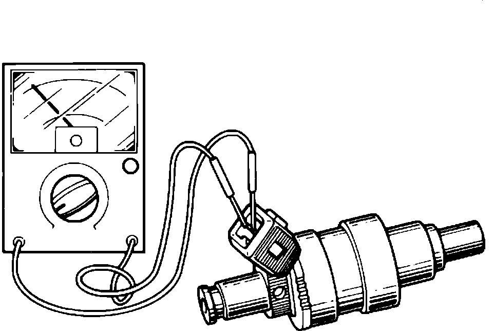 b. If resistance is not 12-16 ohms (exc. 1988 turbo) or is not 11-15 ohms (1988 turbo), replace injector.