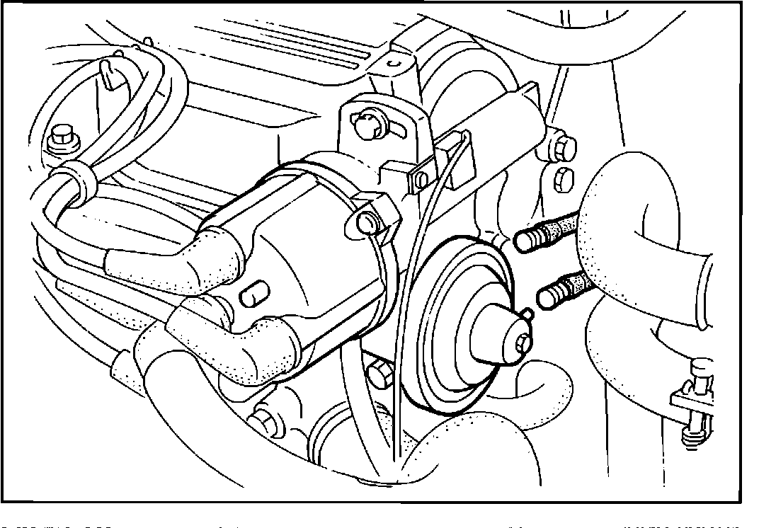 7. With a timing light check that the mark (yellow) on the crankshaft pulley and the timing mark (6°) on the timing belt cover are aligned.