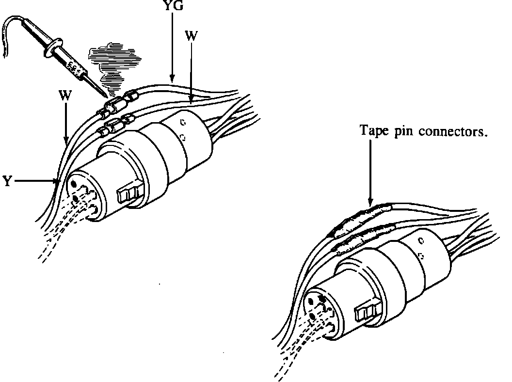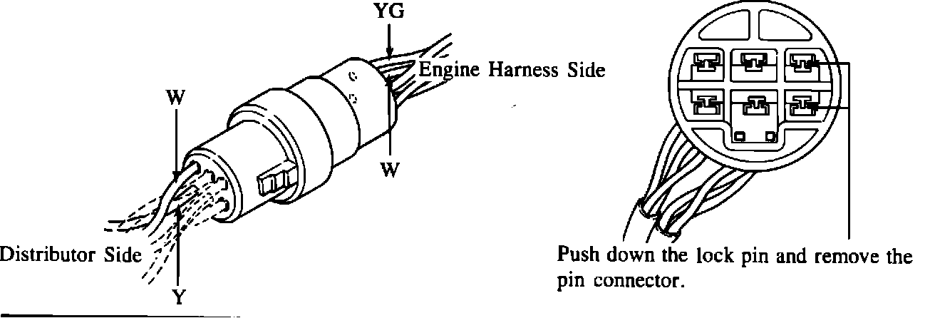 2. Remove the pin connectors of Y, W, YG and W from the B-19 connector as shown in the illustration.