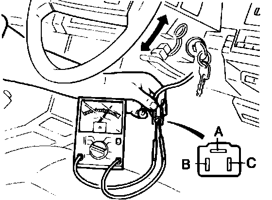7. Connect ohmmeter to terminals A and C, Fig. 23. With steering wheel in neutral position, meter should indicate 50k ohms.
