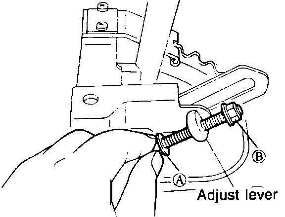 3. Turn nut by hand until locknut A touches adjusting lever lightly.