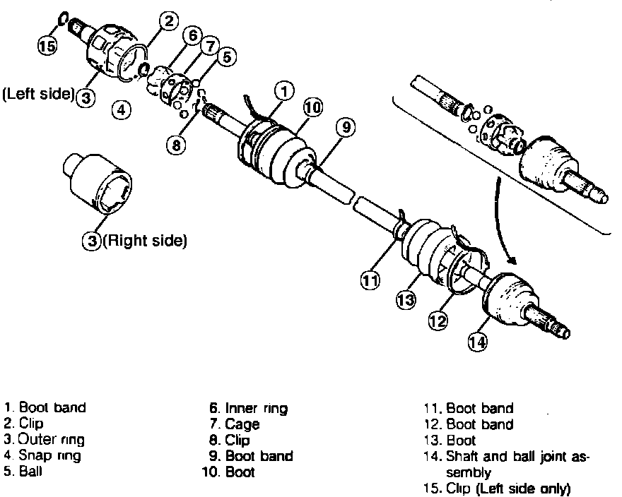 Fig. 5 Exploded view of driveshaft. 1984-87 626 w/manual transaxle: