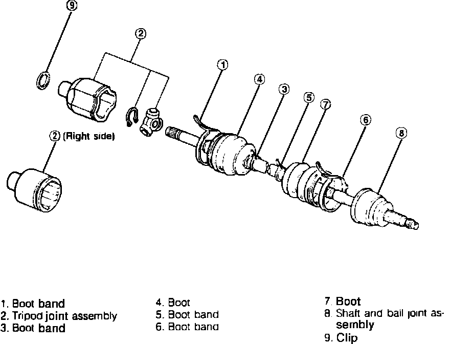 Fig. 7 Exploded view of driveshaft. 1984-87 626 w/automatic transaxle: