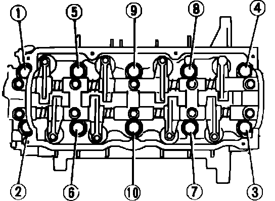 Fig. 1 Rocker shaft bolt loosening sequence: