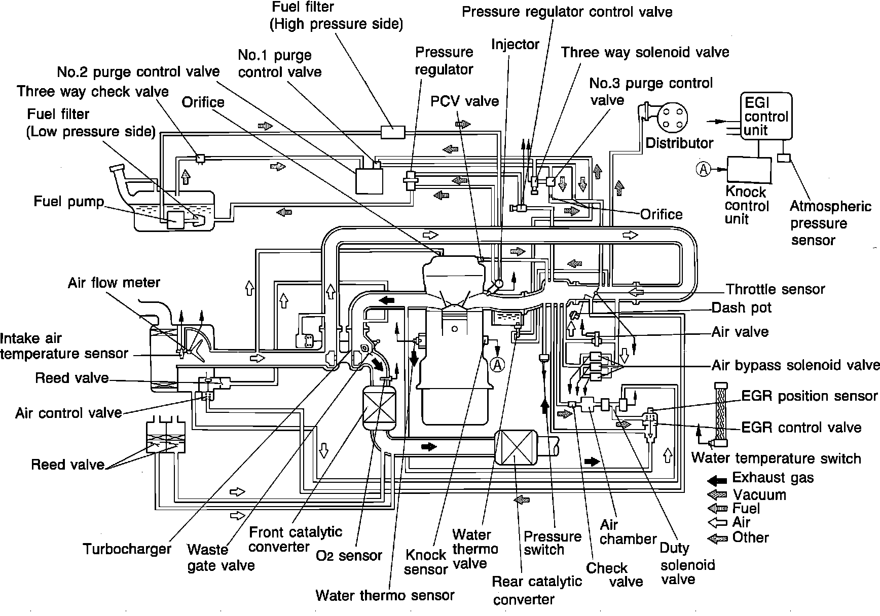 This system, Electronic Gas Injection (EGI) consists of the fuel pump, pressure regulator, injectors, and a pulsation damper.