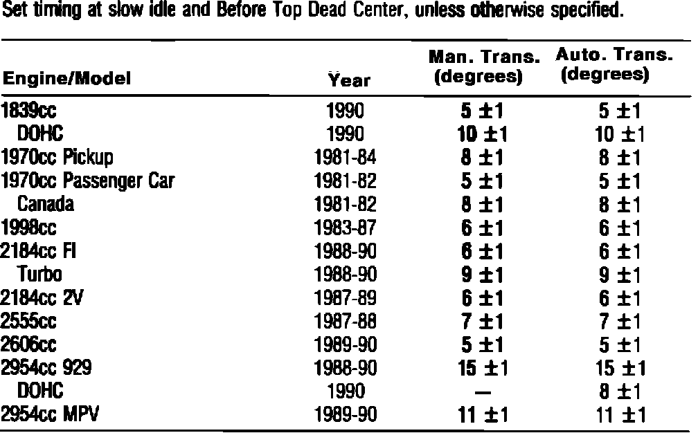 Ignition Timing: Specifications