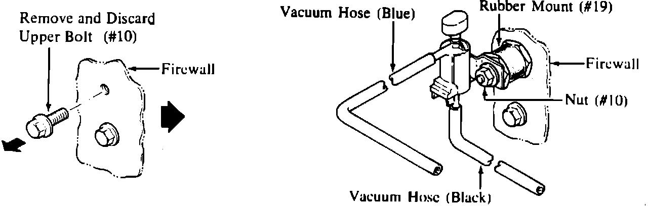 1) Remove one unused bolt (# 10, upper side) which is screwed in the firewall near the canister.