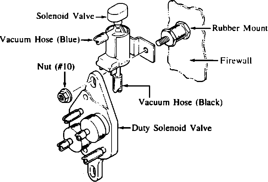 2) Install the solenoid valve between the duty solenoid valve and the rubber mount of duty solenoid valve.