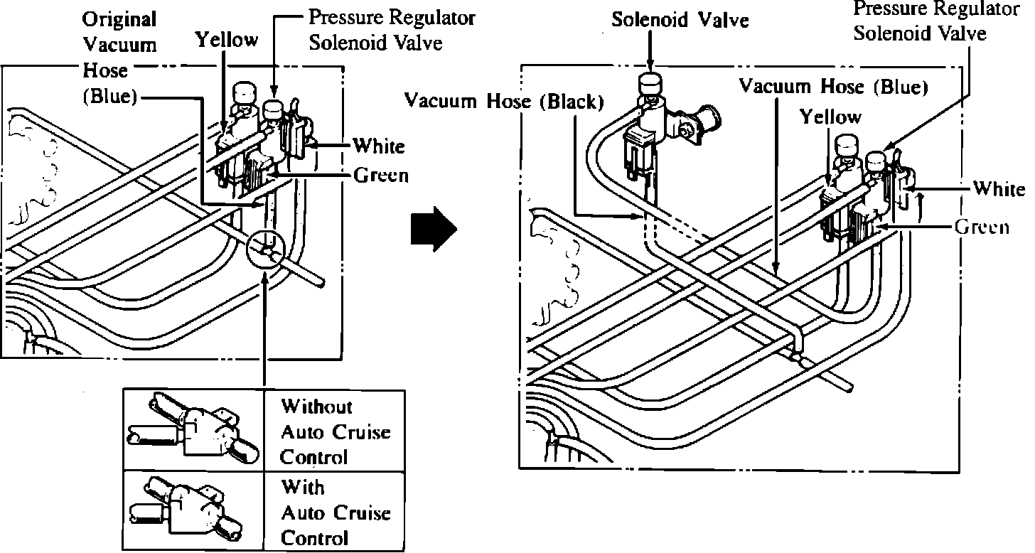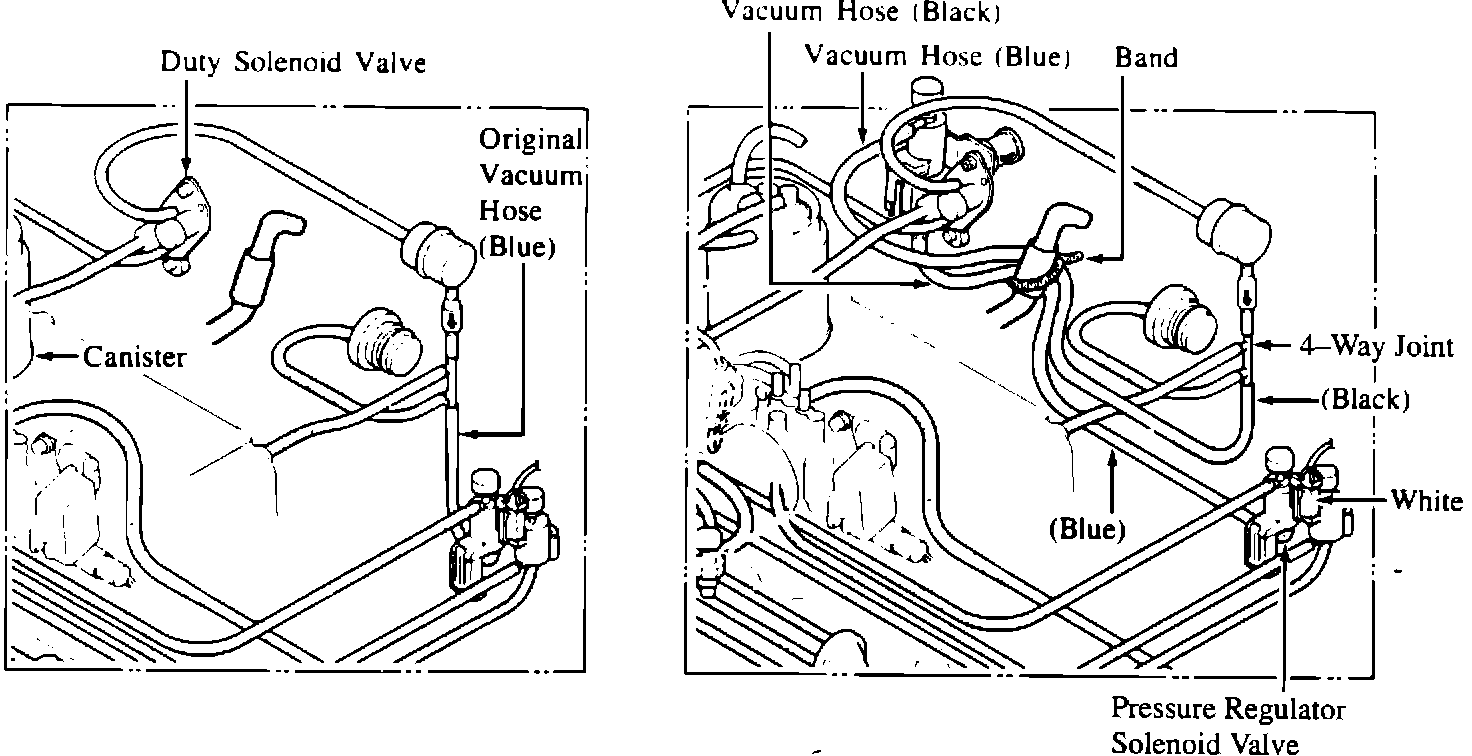 2) Install the vacuum hoses which were assembled with the solenoid valve at step 1.