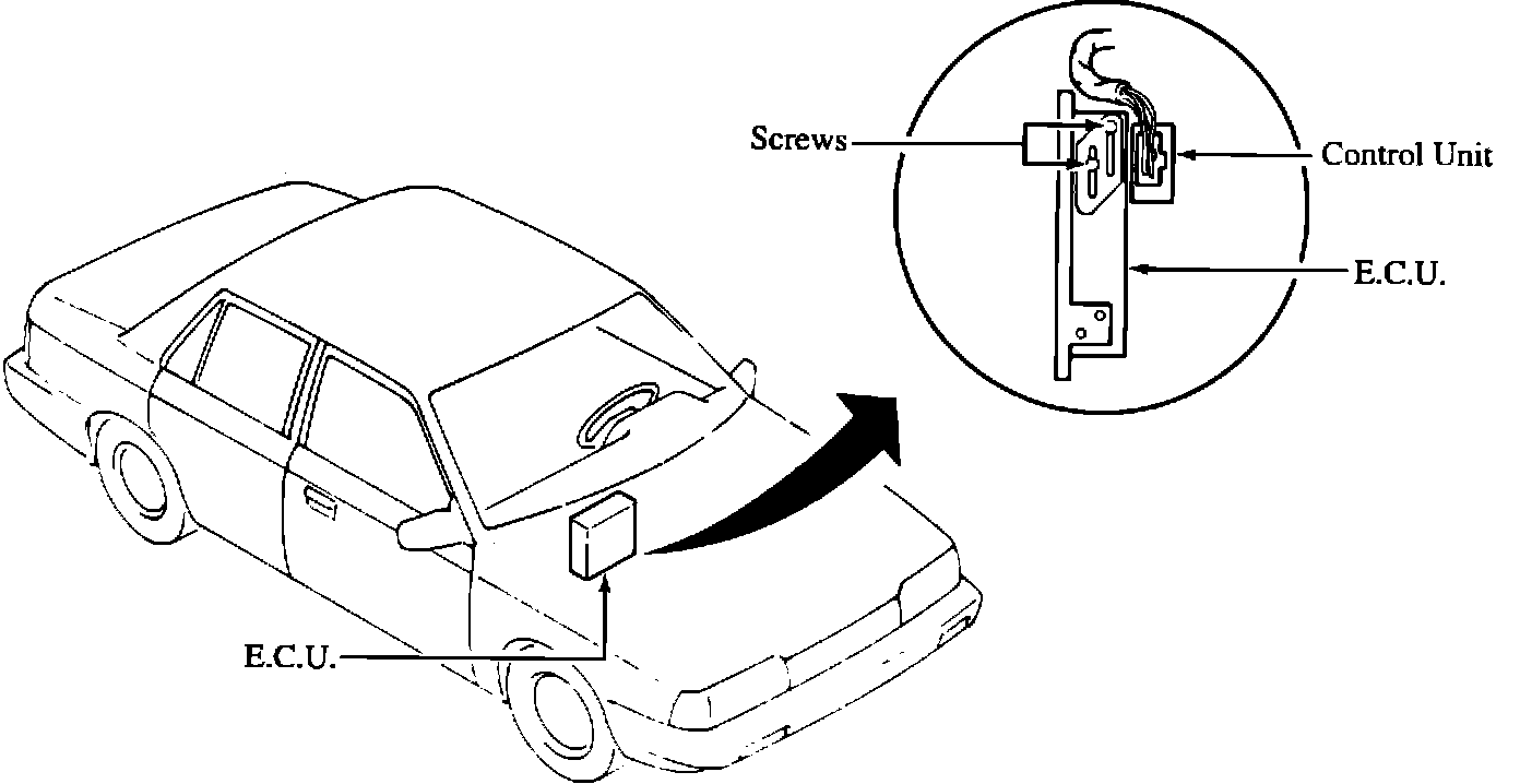 B. Install the control unit to the upper left of the E.C.U. with two screws.