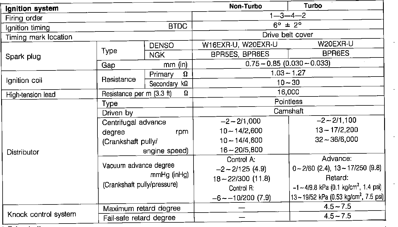 Fig. 2 Ignition system specifications: