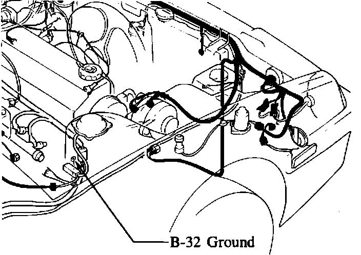 1. Check if the EGI harness is properly grounded at the B32 connector. If the terminal is rusted or the bolt is loose, repair it and apply a suitable anti-rust agent. Then, go to step 2.