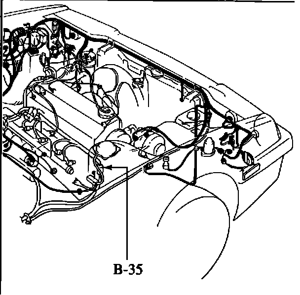6. Check the EGI and injection harness and their connector. Check if the LgB, GO, LgW, LgR wires are properly connected at B-35 connector. If the terminal is rusted or the harness is cut, clean up the terminal or repair the harness, then apply a suitable anti-rust agent.