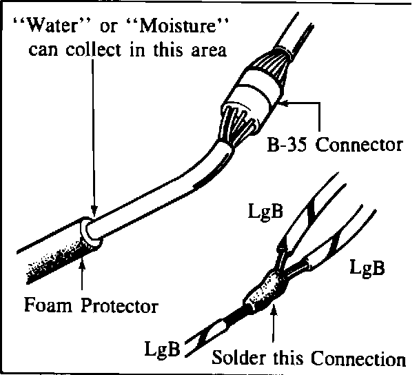 Inspect the EGI harness for water or a poor connection under the foam protector area near the B-35 connector. Check the point where the throttle sensor wires LgB, LgW and GO segments are joined by a crimp connection. If it is rusted or moisture is found, solder these connectors and protect them with insulated tape. Make sure the harness is not touching the steering pipe. If the problem can not be solved after performing the above mentioned inspection, go to step 7.