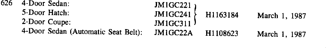 87mazda05Category Applicable Model/s Subject Bulletin No. 037/87