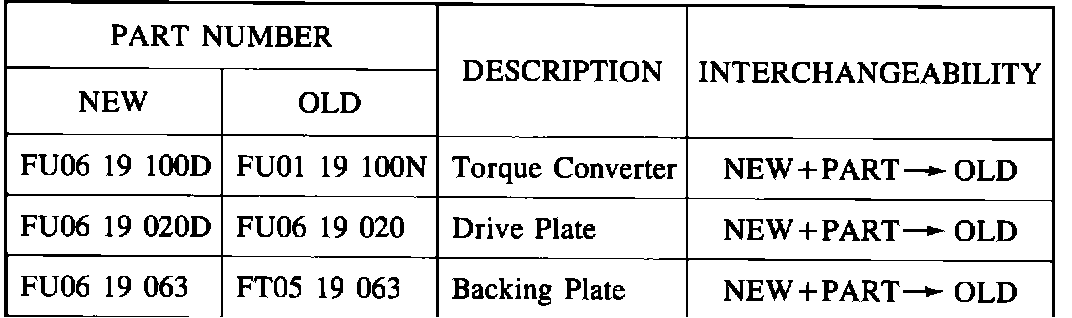 A modified torque converter has been installed at the assembly line since March 1, 1987. The torque ratio of the modified torque convener has been changed from 2.1 to 1.8 in order to improve the acceleration performance.