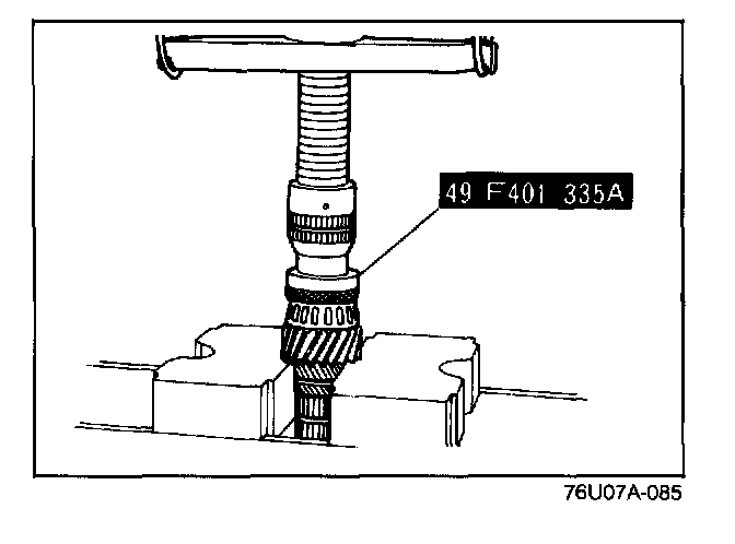 9. Support the bearing inner race of the shaft gear using attachment A (49 F401 335A) of the bearing installer.