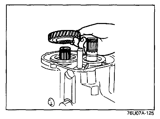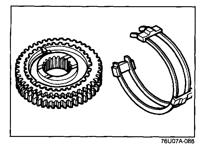 7. Install the retaining ring, the synchronizer ring, and 4th gear onto the shaft gear in that order.