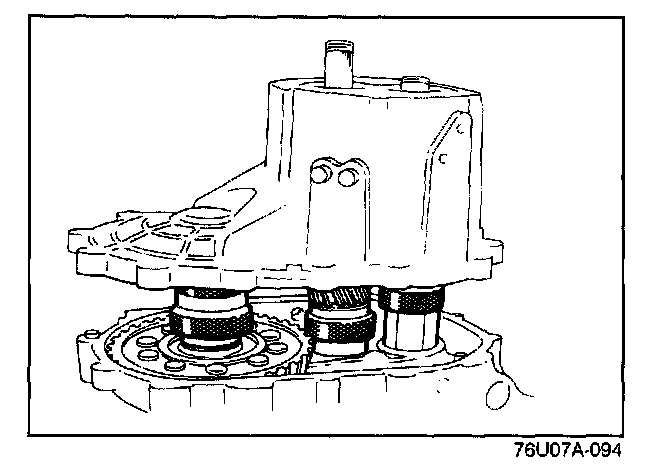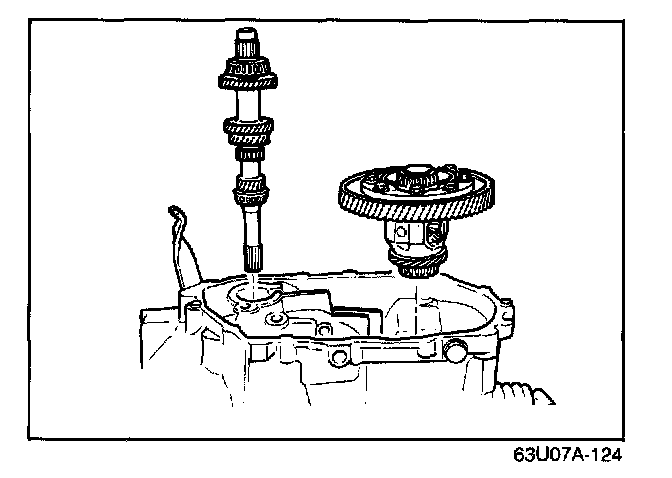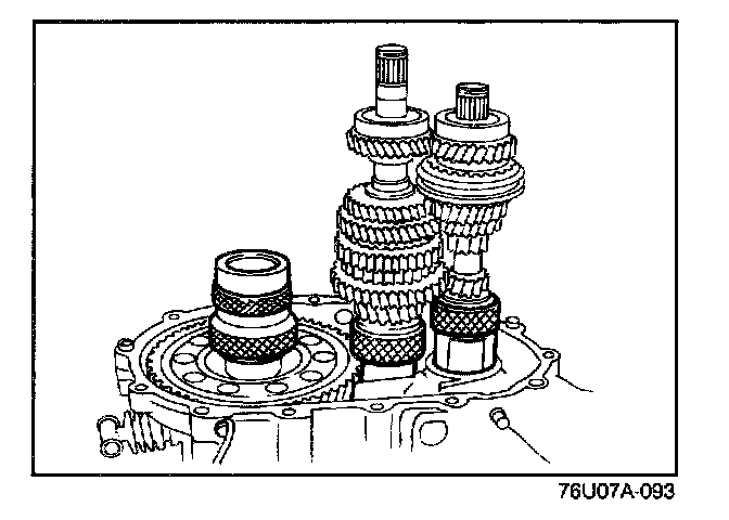 1. Install the primary shaft gear and the differential into the clutch housing.