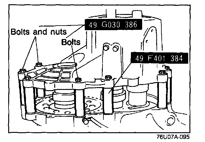 9. Set the collars (49 F401 384) between the transaxle case and the clutch housing, and install the bolt set (49 G030 386), and tighten to the specified torque.