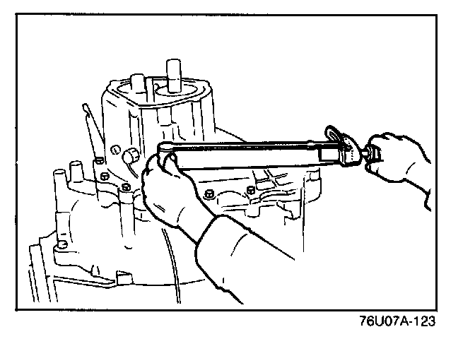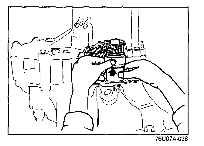 b. Insert the pre-load adaptor (49 G030 455) into the driveshaft coupling hole. If this is not done, the side gear will turn on the pinion gear within the differential gear case, and it might become necessary to disassemble the transaxle again. Leave this adaptor attached until you are ready to install the driveshaft.