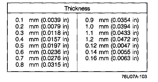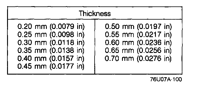 18. Add 0.15 mm (0.0059 in) to the measured clearance and select the combination of shims closest in value to that measurement.