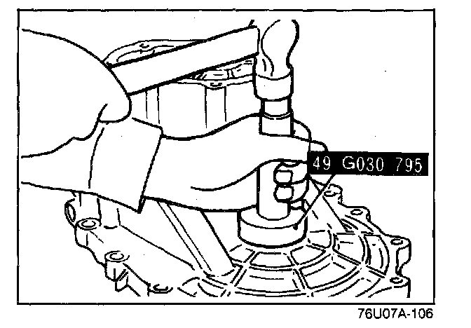 4. Tap in the oil seal (differential side) using the oil seal installer (49 G030 795).